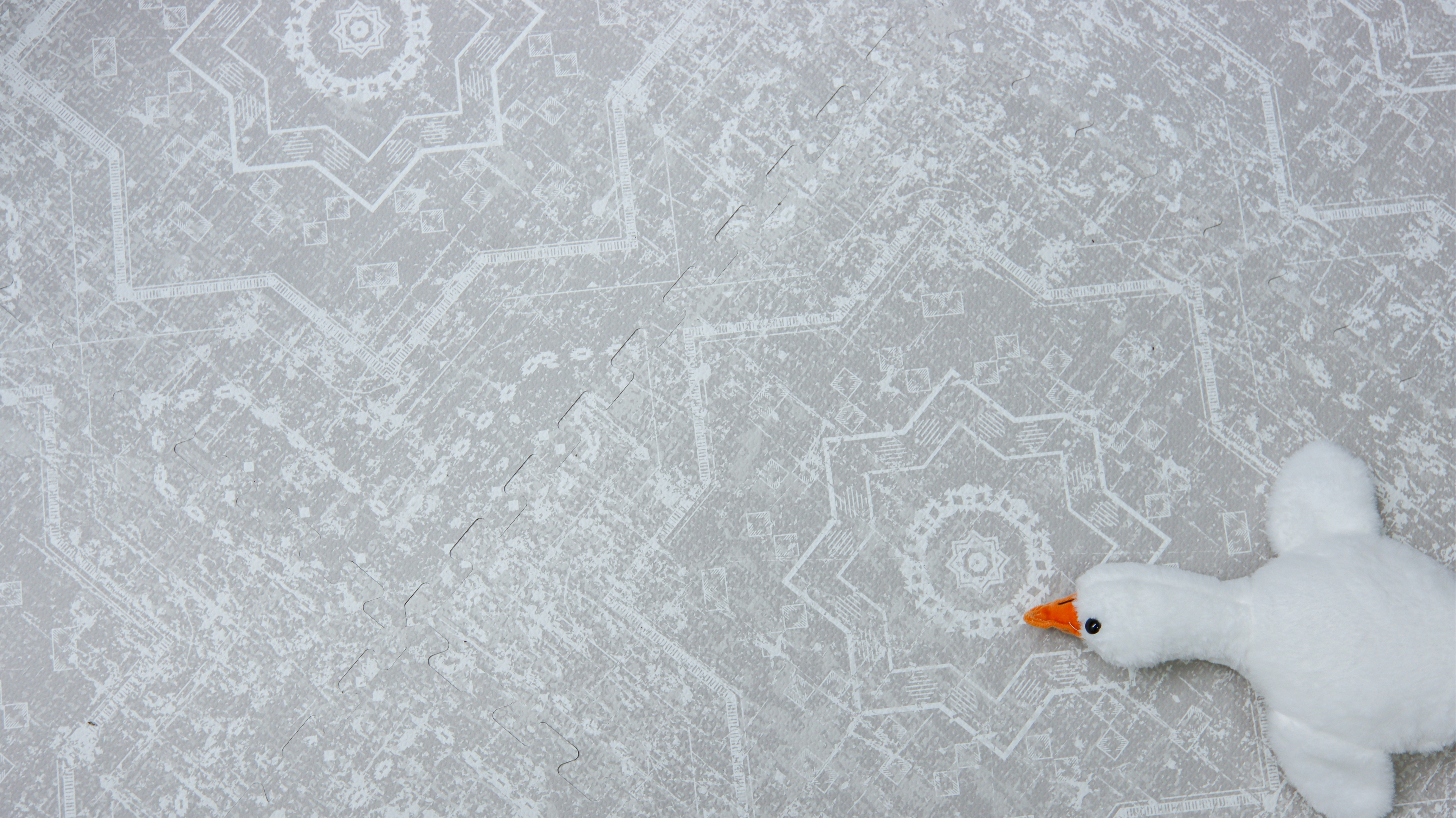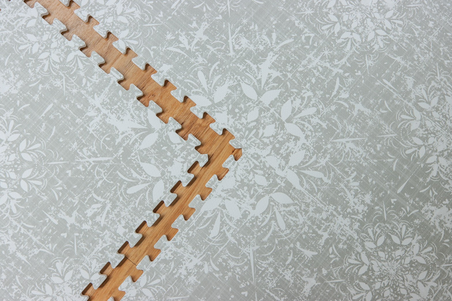 Le tapis de jeu Damas, inspiré par la beauté intemporelle des carreaux orientaux, présente une palette beige douce et des illustrations raffinées, apportant une touche sophistiquée à chaque espace.